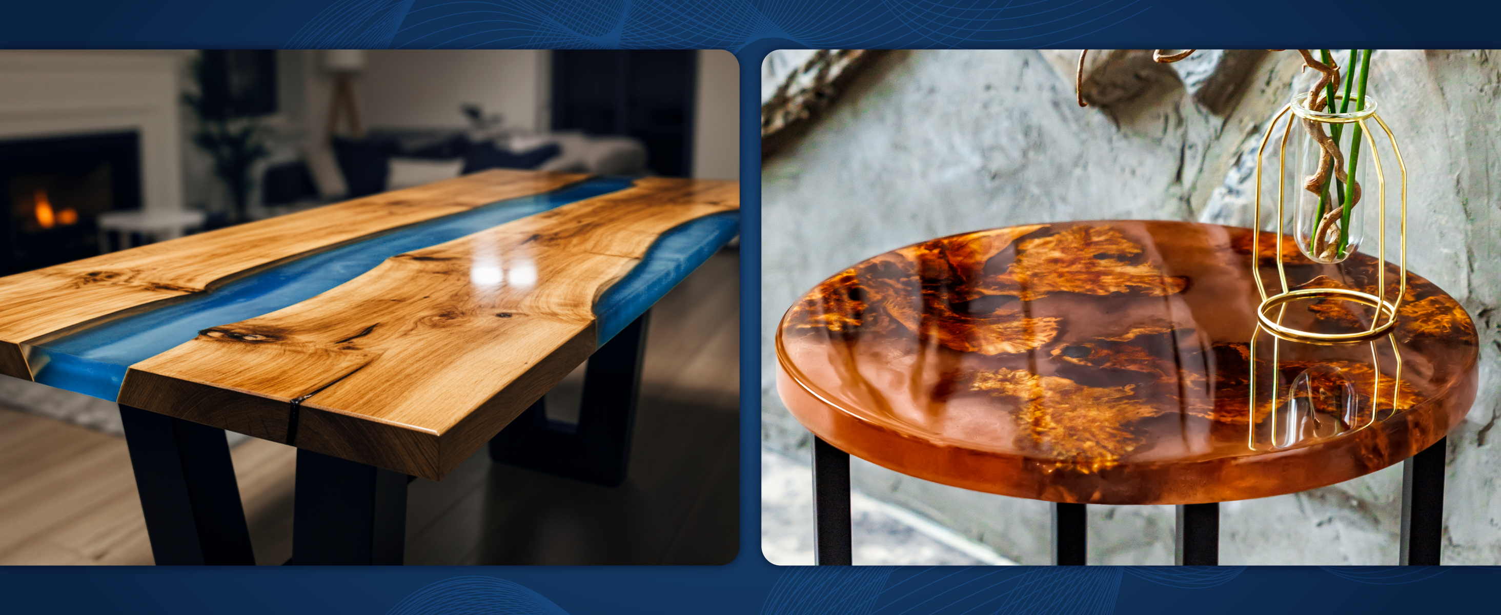 River tables, sculptures and decorative objects, large art pieces, encapsulation, flower preservation, casting moulds