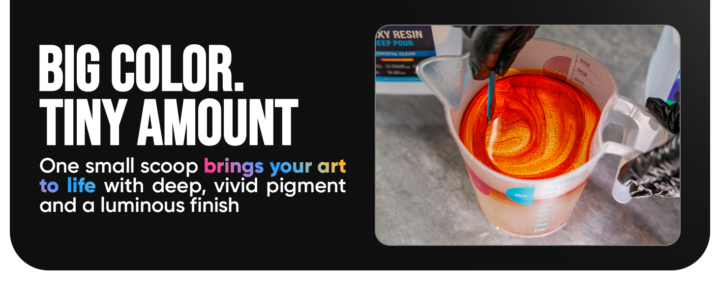 Bring your art to life with premium-grade, fine pigments that are vivid, bold, and beginner-friendly. Think outside of the box and create a masterpiece with our non-toxic pigment powder for epoxy resin. It's safe and easy to use in just three steps: sprinkle, stir, and set! Craft unique handmade products with a depth effect, pearlescent finish, and long-lasting luminosity.