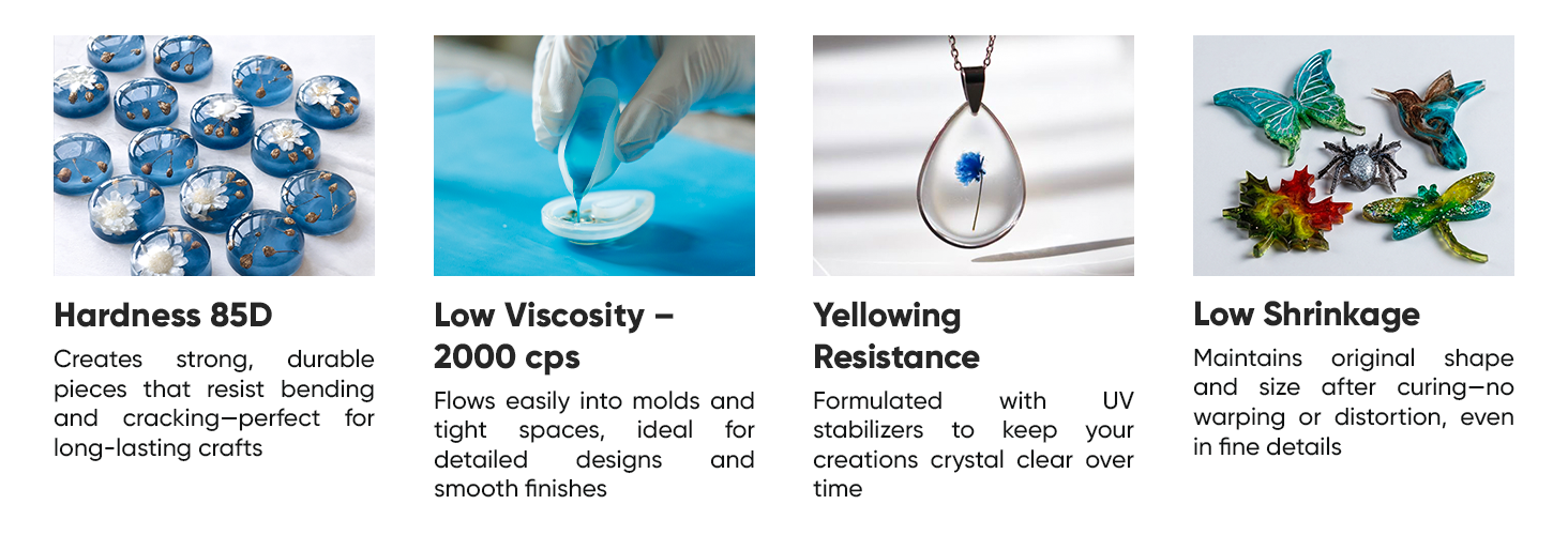 No mixing required. This UV resin is ready to use straight from the bottle — simply pour, shape, and cure under UV light.