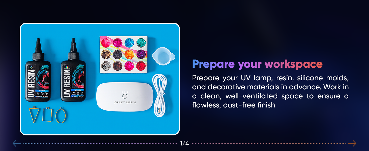 - Complete starter setup - includes the lamp, ultraviolet resin, silicone mat, cups, sticks, and gloves for a cleaner, more efficient workflow.